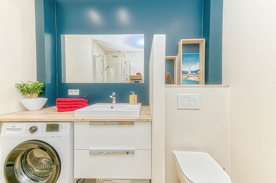 Idéalement situé dans quartier paisible : commerces de proximité, bar, restaurants, squares, et supermarché, ouvert le dimanche. Arrêt de bus en bas de l’immeuble, (10 minutes de la gare et du centre- ville et de la vieille ville d’Annecy).